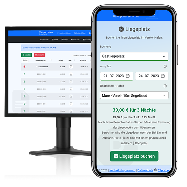 Gastliegeplätze längstseits am Nordsteg oder an Fingerstegen mit grünem Schild, siehe
